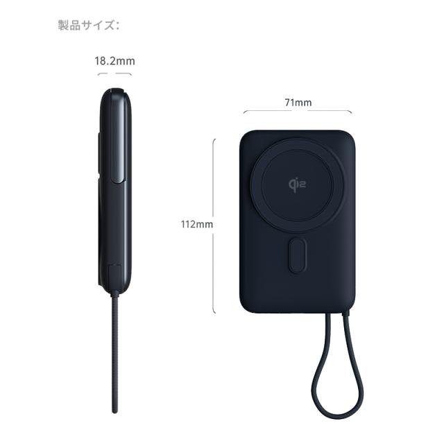 本体に収納式のType-Cケーブルを内蔵し、必要な時に引っ張り出して充電に使用できます。さらに、内蔵のケーブルはストラップとしても活用可能。持ち運びの便利さと紛失防止を両立した実用的なデザインです。
