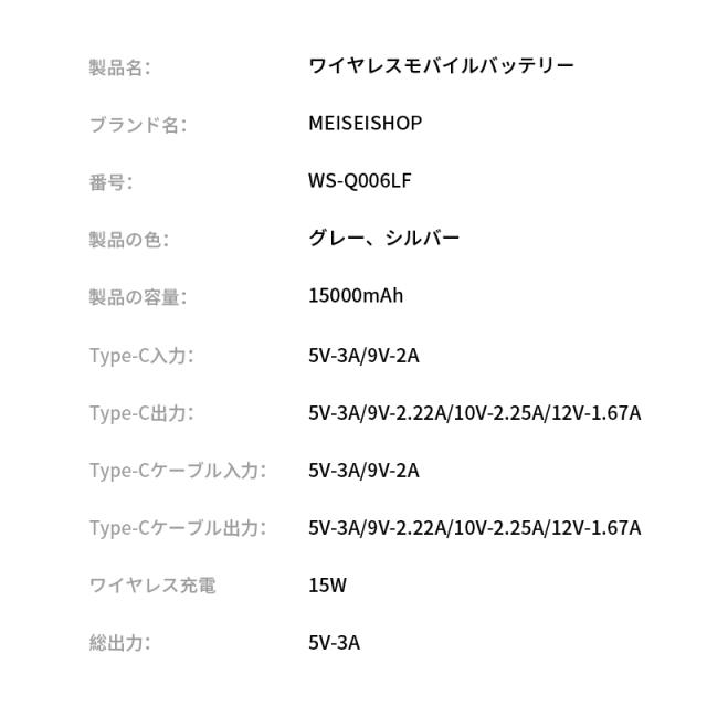 バッテリー容量:15000mAh