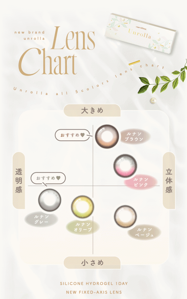 カラコン 1-DAY refrear Unrolla ワンデー リフレア アンローラ 1箱 10枚入り UV 度あり 度なし シリコーン ハイドロゲル 回らない 水光 うるおい 次世代カラコン