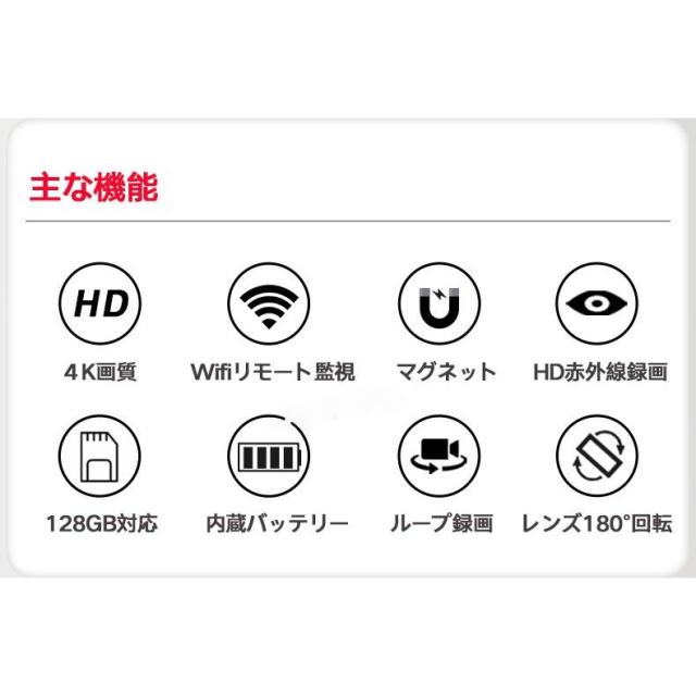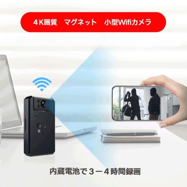 小型Wifi防犯カメラ 4K画質 AP機能 128GB対応 動体検知 不可視赤外線 繰り返し録画 レンズ180°回転 マグネット