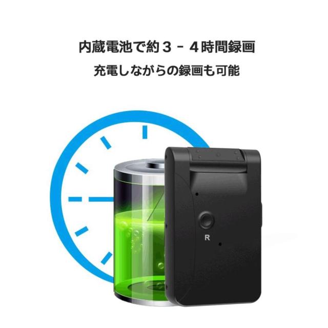 内蔵電池搭載、フル充電で約3−4時間録画可能!充電しながらの録画も可能!