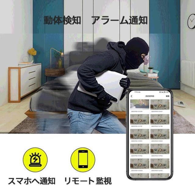 小型カメラ ワイヤレス 監視カメラ wifi 動体検知 赤外線 4K画質 SDカード録画 常時録画 繰り返し録画 遠隔監視
