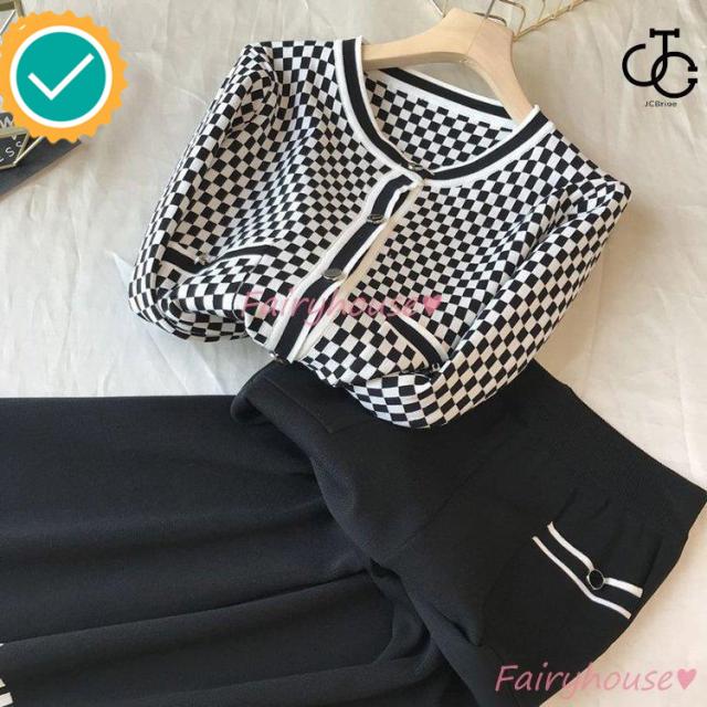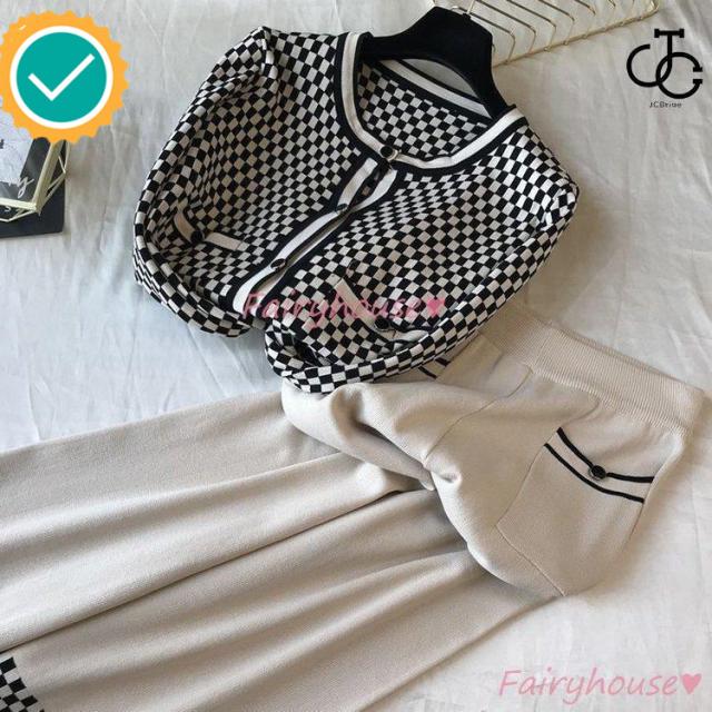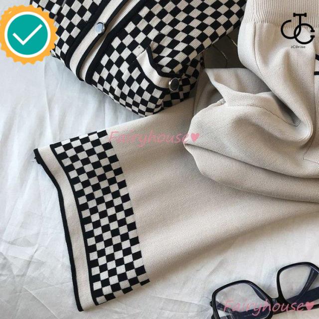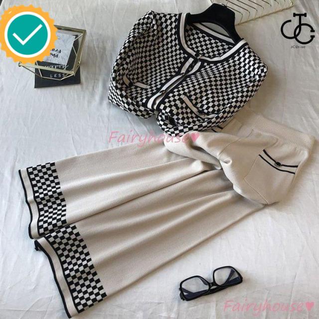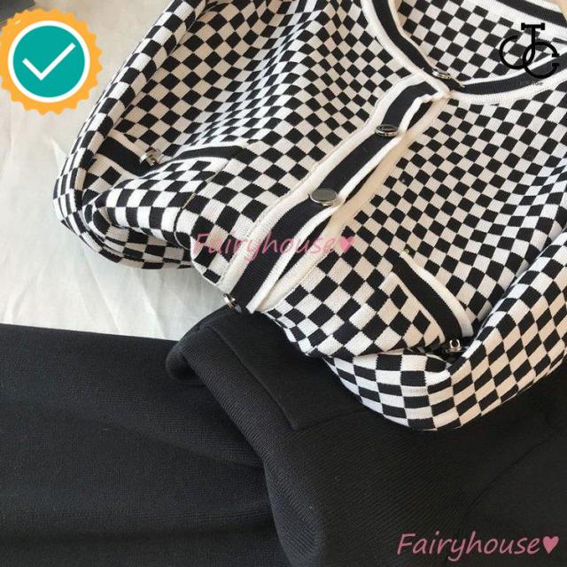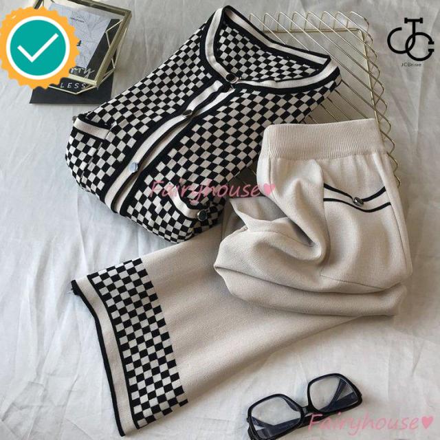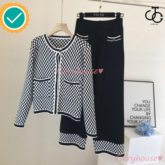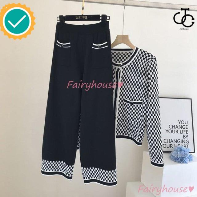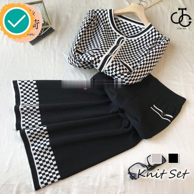 連携キーワード:ニットセットアップ レディース 40代 秋冬 長袖 ニットカーディガン チェック柄 ワイドパンツ ニットセットアップ オシャレ韓国風 大人着痩せ カジュアル 通勤 50代 30代