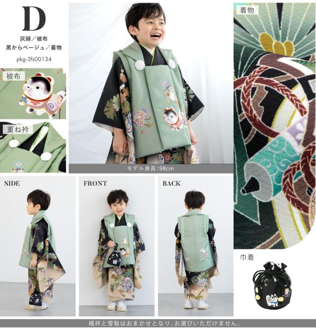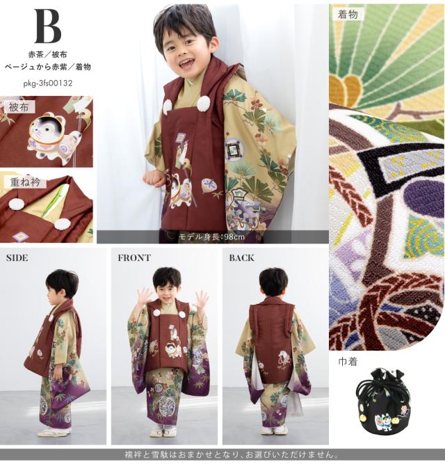七五三 着物 被布コート セット 3歳 男の子 2025新作 モダン 和柄 くすみ 赤 茶 紫 緑 黒 紺 青 ピンク ベージュ かわいい おしゃれ ボーイズ 男児 3才用 販売 購入 送料無料