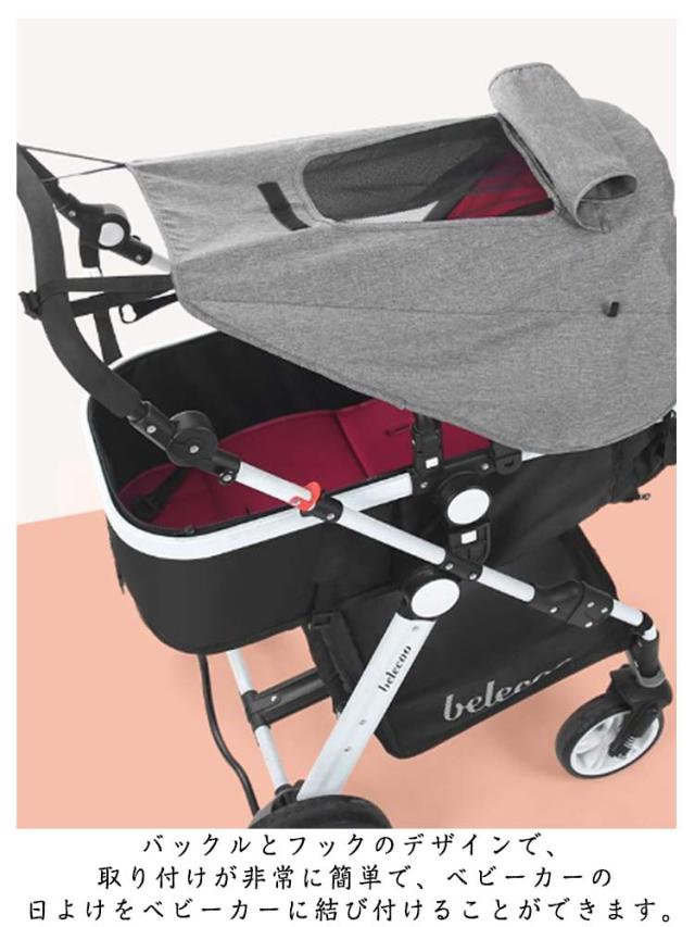 | 赤ちゃんの紫外線や熱中症対策に! ベビーカーに簡単に取り付けることができる日除けカバーです。 大型日よけカバーなので、ベビーカーはすっぽりと覆われ、強い日差しをしっかりと防ぎます。夏場にも赤ちゃんを快適にお出掛けを楽しむことができます。 バックルとフックのデザインで、取り付けが非常に簡単で、ベビーカーの日よけをベビーカーに結び付けることができます。 中央部分はメッシュのサンルーフ設計で、かぶせても座席に熱がこもらず快適! 軽くて折りたたみでき、使わない時にはコンパクトに収納できます。 暑い日のお出かけや散歩、レジャー、旅行におすすめです。 | |