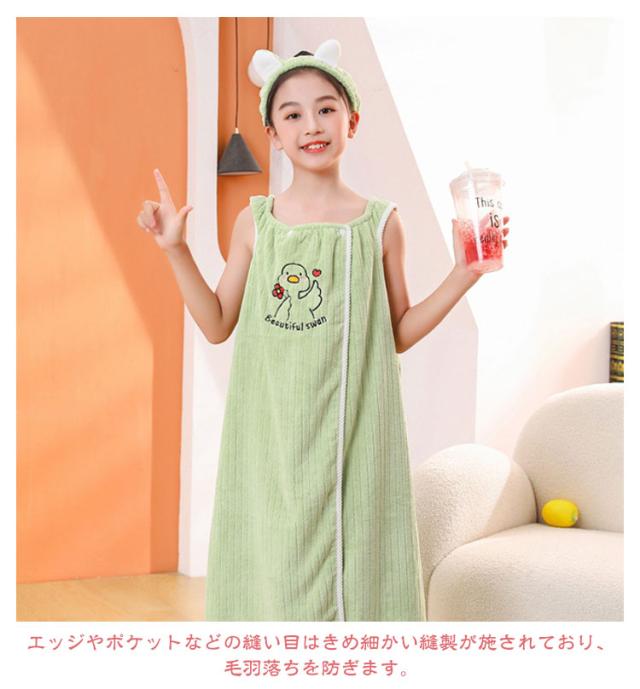| 【子供用着るバスタオル】【2サイズ】【吸水・速乾】 極細マイクロファイバーが体を包み込んで、汗や水分を素早く吸収してくれます。 風呂上りをもっと快適に。柔らかくて肌にやさしいワンピースタイプです ふわふわで柔らかい素材は、水を素早く吸収します。 柔らかいバスタオルと快適な温度。ゆったりとリラックスタイムをお楽しみください。 エッジやポケットなどの縫い目はきめ細かい縫製が施されており、毛羽落ちを防ぎます。 普段使いはもちろんサウナ・プール・ジムなど幅広いシーンで活躍します。 | |