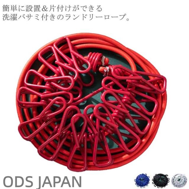 | 簡単に設置&片付けができる洗濯バサミ付きのランドリーロープ。 12個の洗濯クリップで洗濯物が固定でき、風が吹いても滑らないです。 伸縮性のあるロープなので幅広い場所でご活用頂けます♪ 靴下、ネクタイ、マフラー等様々な小物をしっかり掛けることができます。 軽量で持ち運びしやすく、バックパックに入れることができます。 室内干しはもちろん、出張や旅行・アウトドアシーンにも◎ | |