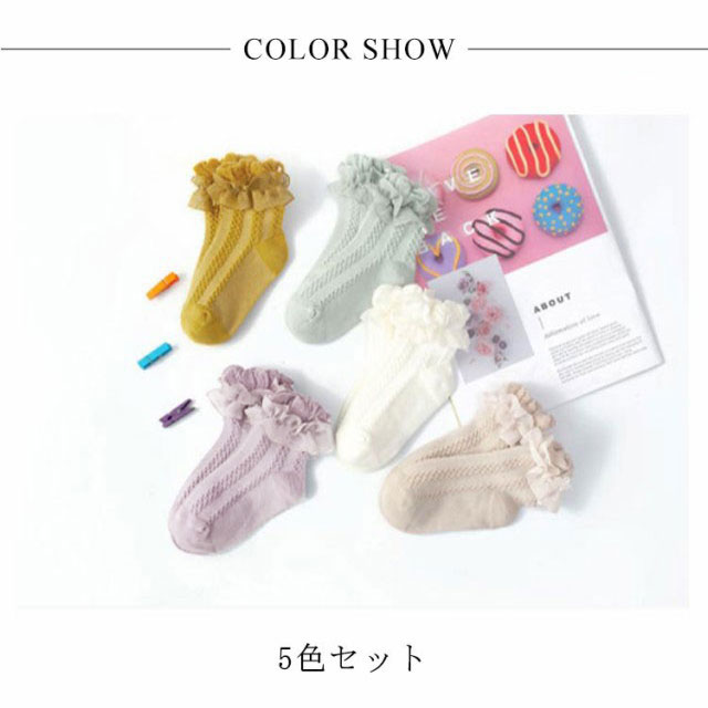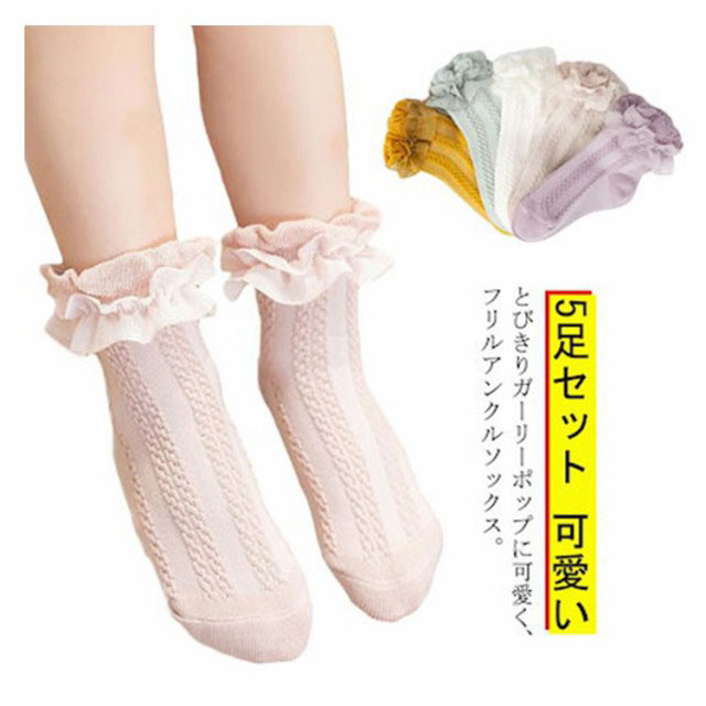 5足セット 靴下 キッズ ソックス ベビー靴下 女の子 入学式 子供 フリル アンクルソックス フォーマル レースソックス ショートソックス お受験 卒業式 卒園式 入園式 シンプル 可愛い お洒落 ホワイト 白 グリーン イエロー パープル ピンク ジュニア 無地 韓国風 送料無料