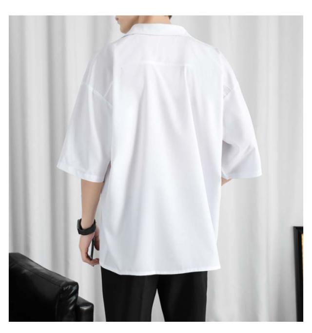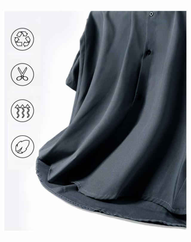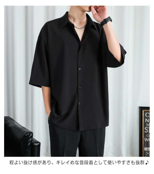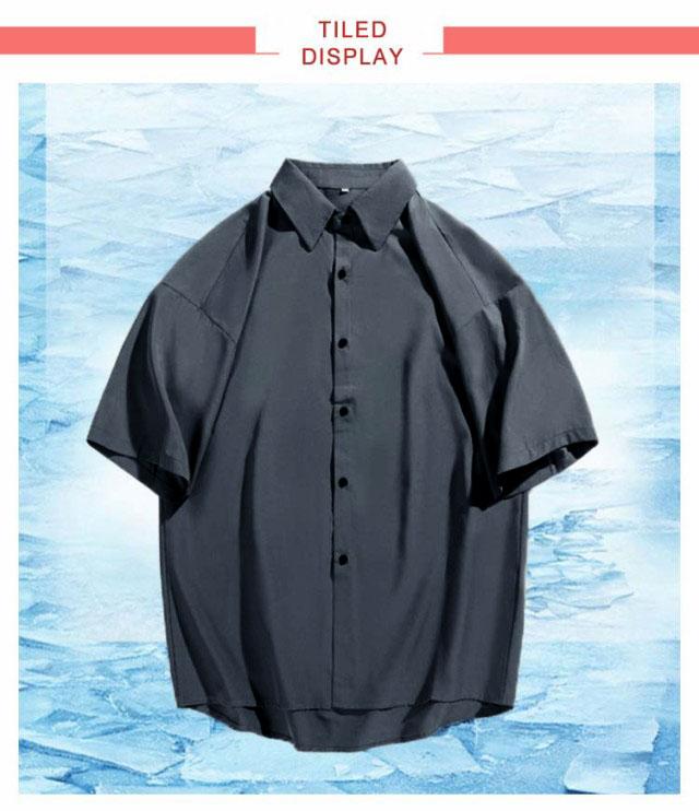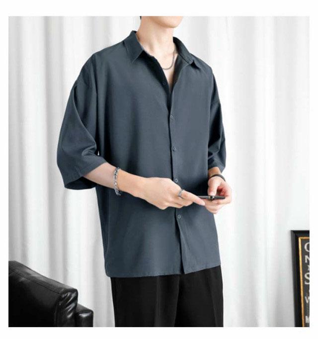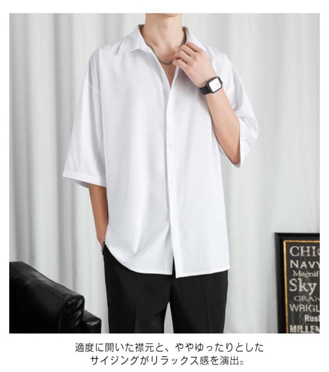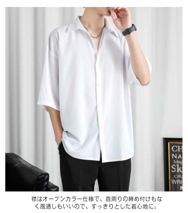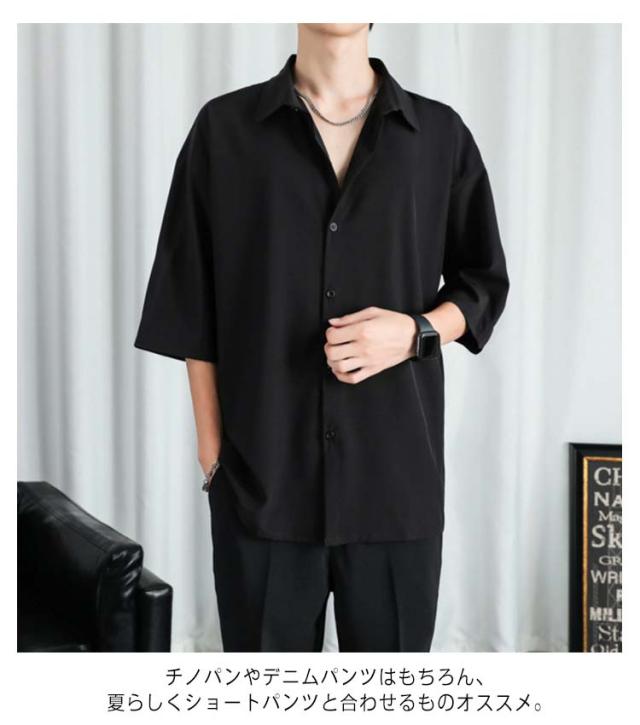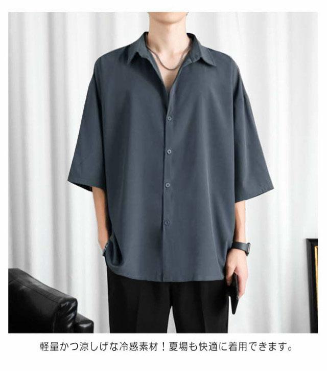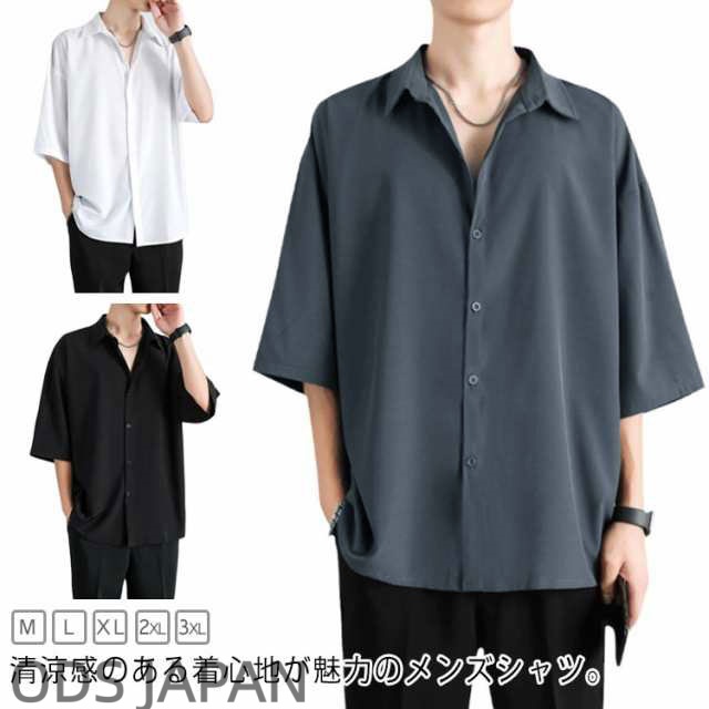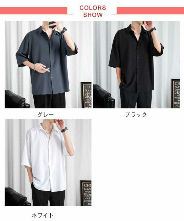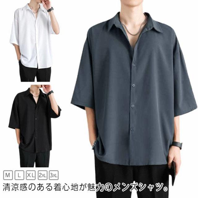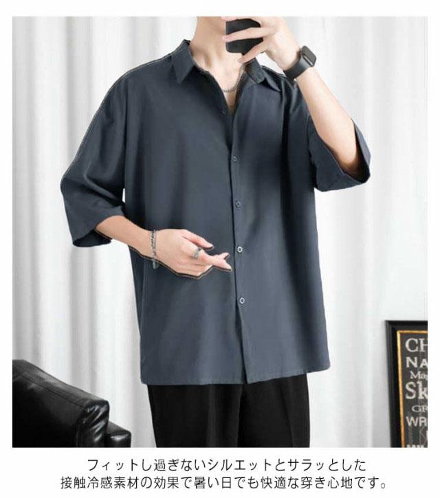カジュアルシャツ 七分袖 半袖 ビジネス メンズ 夏 アイスシルク シャツ 接触冷感 涼しい 長袖 前開き 無地 白 黒 グレー ホワイト ブラック 大きいサイズ ゆったり ひんやり おしゃれ 送料無料