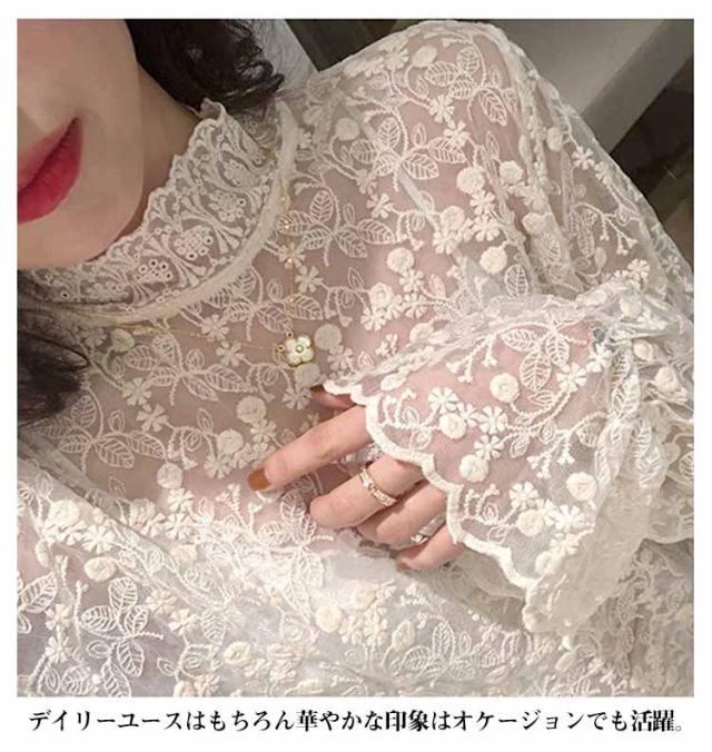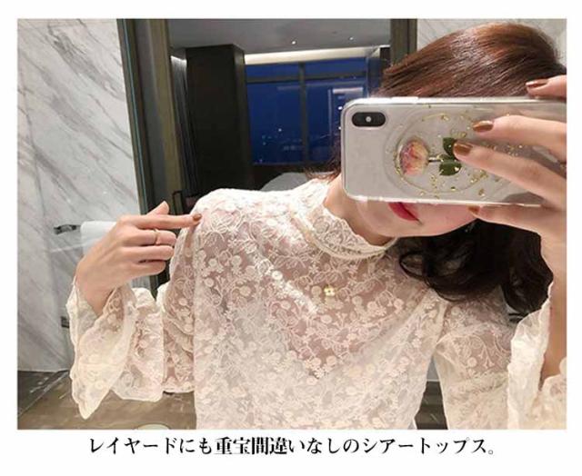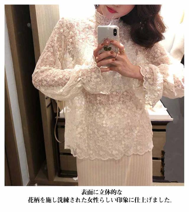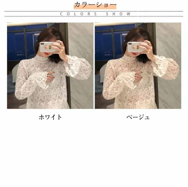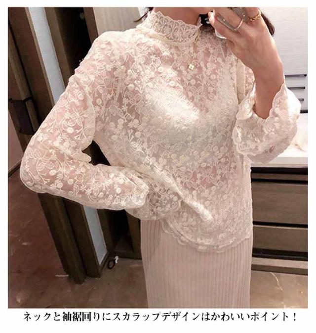 スカラップ刺? シアー トップス レース ハイネック 長袖 インナーシャツ レディース シースルー トップス 肌着 華やか 上品 薄手 着回し 春 秋 夏 きれいめ 重ね着 送料無料