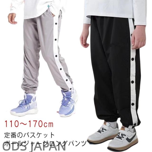 バスケットボールパンツ ジャージパンツ キッズ ジュニア スナップボタン サイドボタン 裾ボタン バスケパンツ サイドライン バスケットボール 練習用パンツ 長ズボン ロングパンツ 男の子 女の子 ジャージ 下