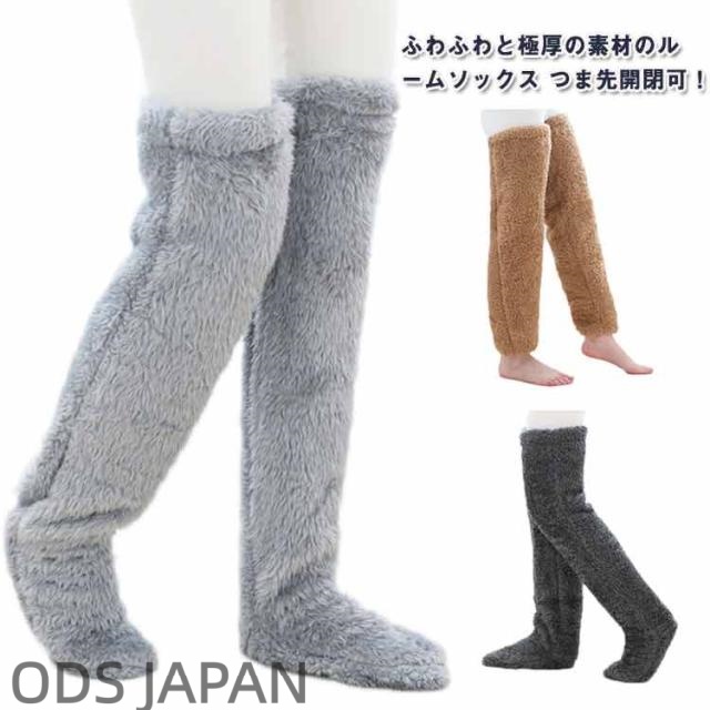 ルームソックス つま先開閉可 極暖 足が出せる ロングカバー レディース メンズ 秋冬 2way もこもこソックス ムレにくい 厚手 ルームウェア 靴下 膝上 防寒 ふわふわ 暖かい 無地 冷えとり 柔らかい 裏起毛 おやすみ 寒さ対策 寝る時 室内履き フリーサイズ