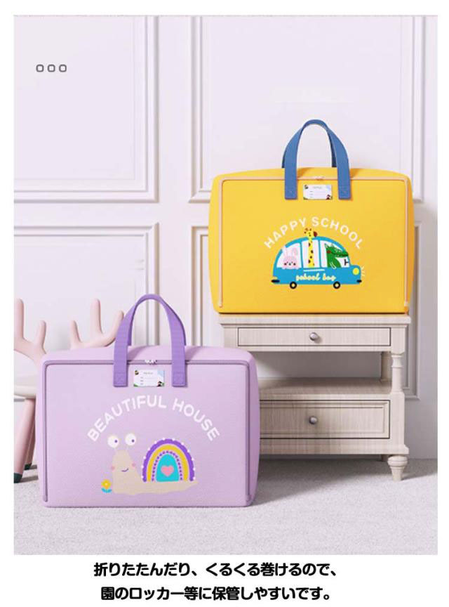 | マチつきなので既製ベビーふとんセットも入る! 撥水加工を施しており、少々の雨や雪なら安心。 又、万が一汚れた場合でも、手洗いにてお洗濯が出来ますので安心です。 標準的なお昼寝布団セットなら余裕で入るサイズに成っております。 折りたたんだり、くるくる巻けるので、園のロッカー等に保管しやすいです。 ご旅行や帰省時にもマルチに使用できるバッグです。 | |