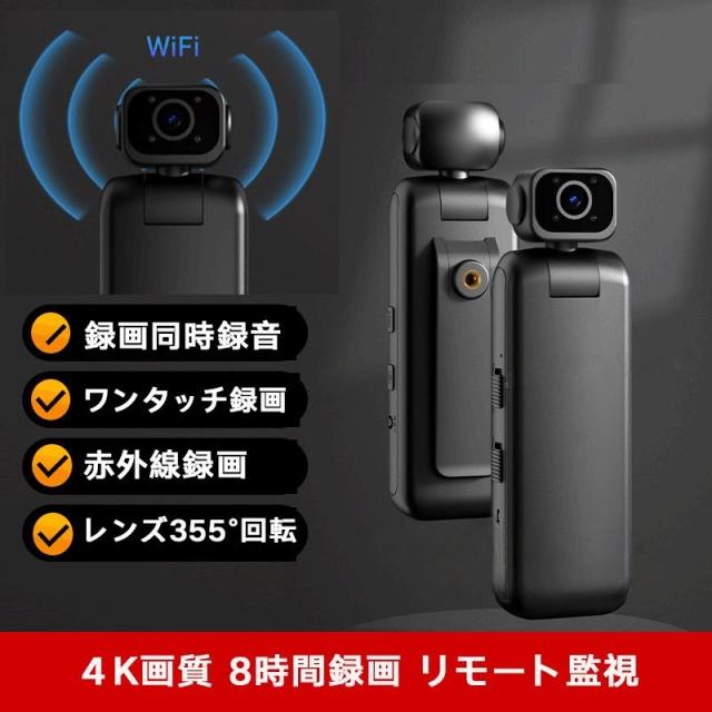 防犯カメラ 小型 ビデオカメラ:4K画質!8時間録画! Wifi機能 録画録音静止画 180°反転視角 355°水平回転 赤外線録画 140°広角 繰り返し録画
