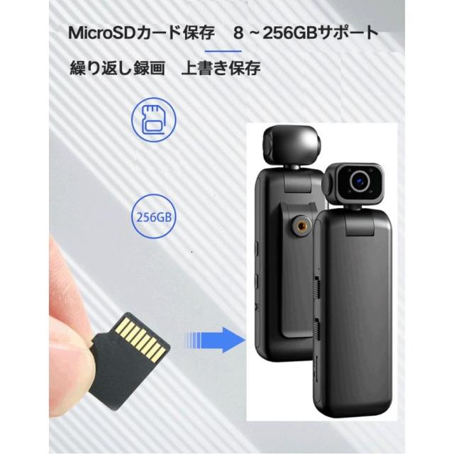 MicroSDカード256GBまで対応、SDカードを挿入すると自動で録画を開始します。