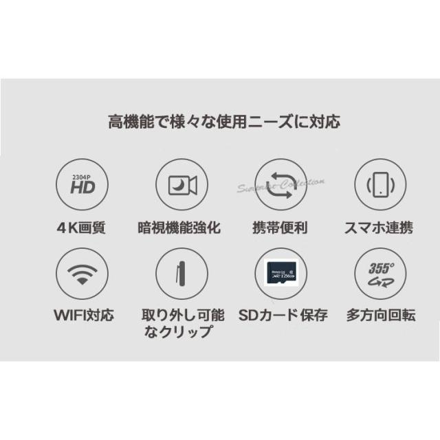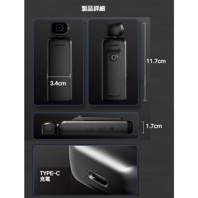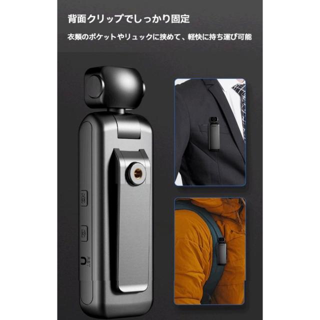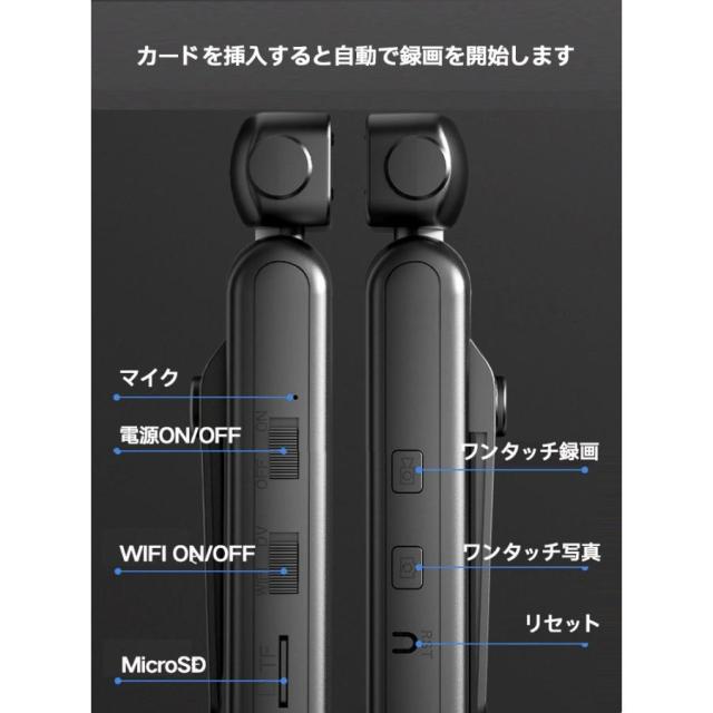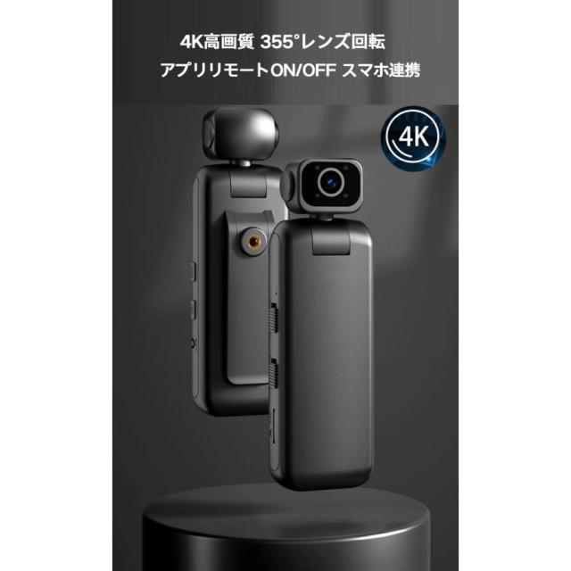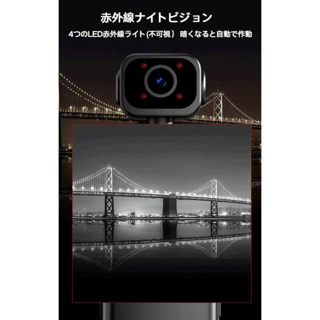 小型防犯カメラ リモート監視 アクションカメラ ビデオカメラ 4K 140°広角 クリップ 1/4ネジ穴 ワンタッチ録画 録音