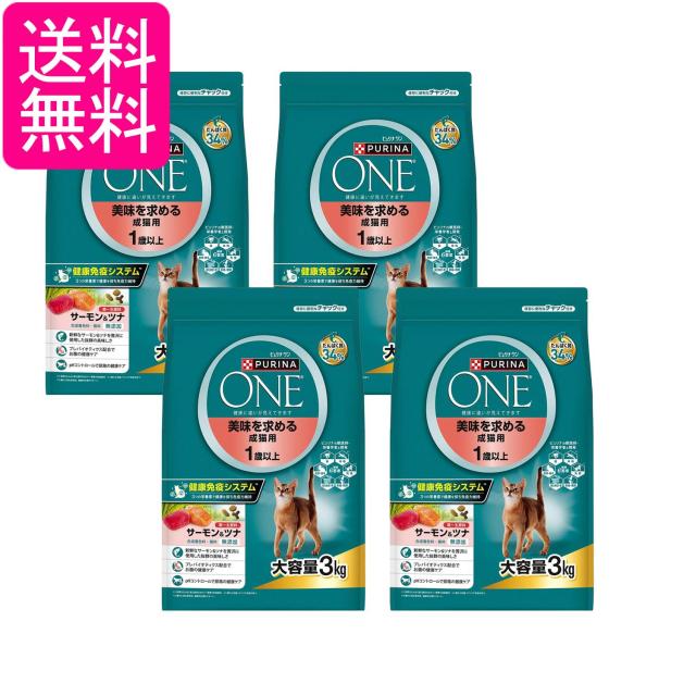 4個セット ピュリナワン キャット ドライ 美味を求める成猫用 1歳以上 サーモン&ツナ 3kg 送料無料