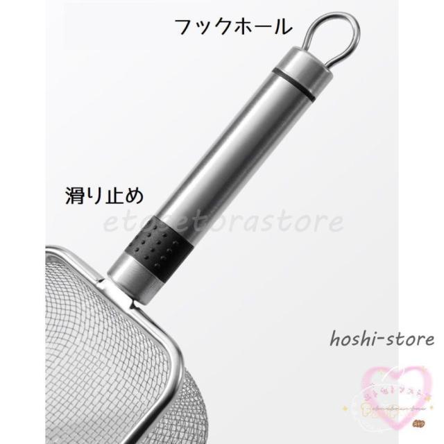 持ち手には滑らないように滑り止め付きで、フックホールもついているので、フックにかけて収納できます。