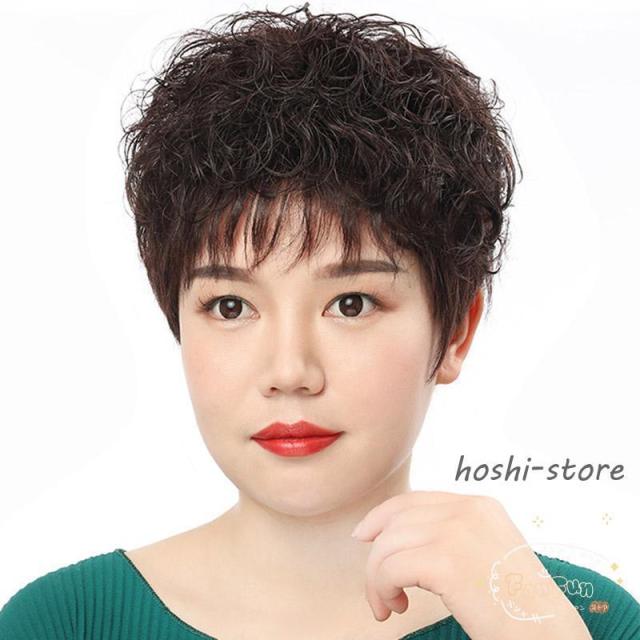 ウィッグ レディース カール ショート ボブ 自然 ヘアウィッグサイズ調整 白髪隠す 巻き髪 自然毛 フルウィッグ 女性 かつら シニア