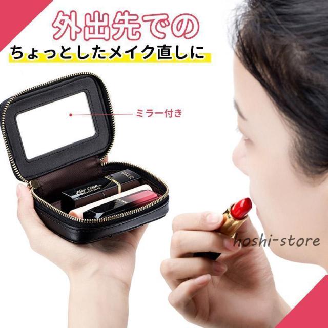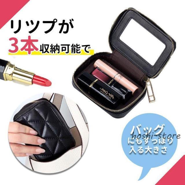 リップケース ミラー付き リップポーチ 本革 キルティング ケース 小さめ 口紅ケース メイクポーチ ポーチ 小物入れ 化粧ポーチ