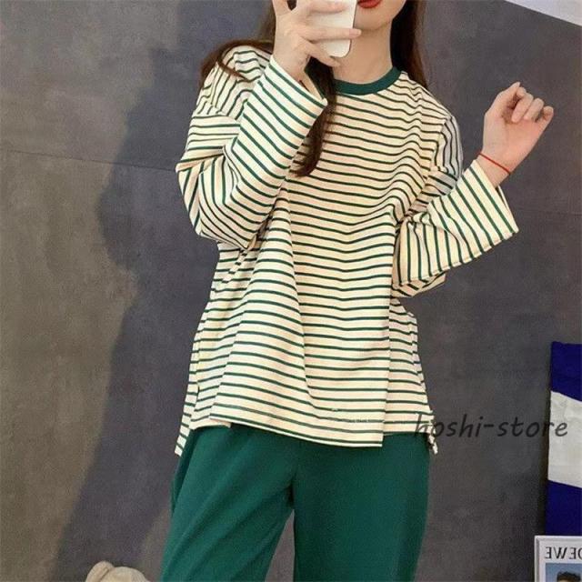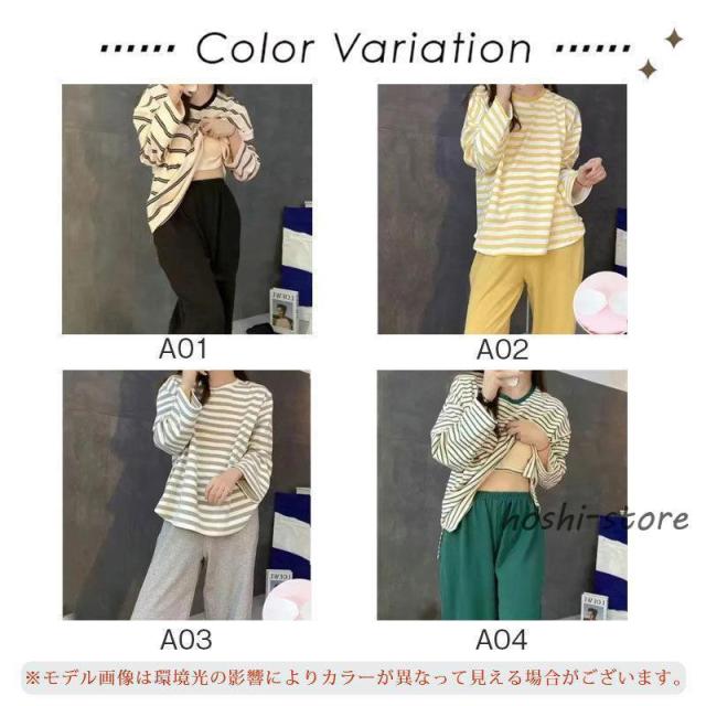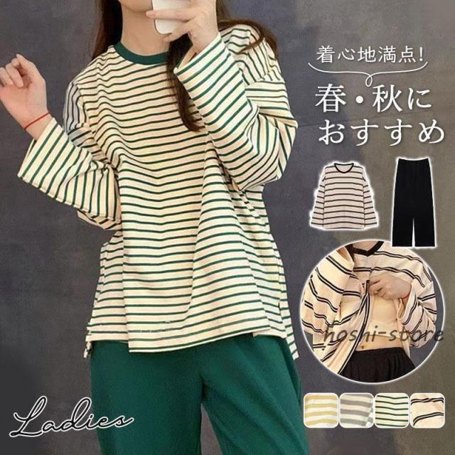 パジャマ レディース 長袖 ルームウェア ボーダー柄 カップ付き 春 夏 初秋 寝間着 ナイトウエア 着心地 部屋着 おしゃれ 入院 産後 旅行
