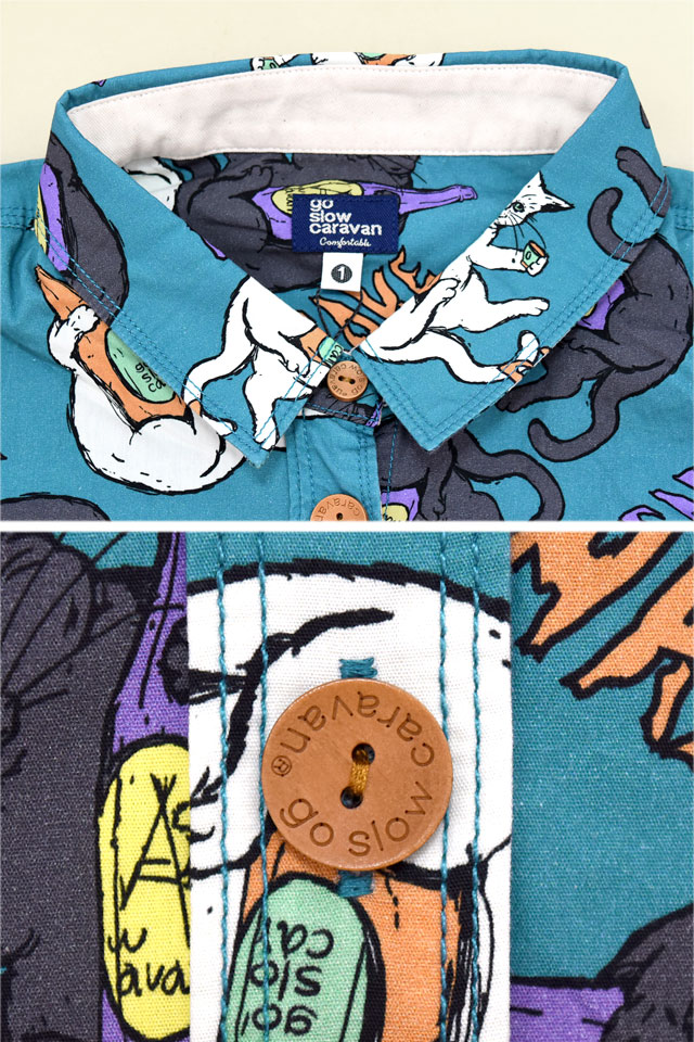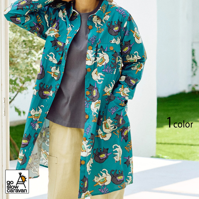 猫と晩酌 シャツワンピース go slow caravan レディース 350201 ゴースローキャラバン ネコ 総柄