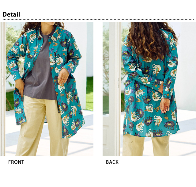 旅行やフェス、キャンプ、サーフィン、サイクリングなど、外遊び好きの仲間が集まってはじめたブランド【go slow caravan】より「猫と晩酌 シャツワンピース(350201)」のご紹介です。 今季の総柄ワンピースはオリジナルの猫と晩酌柄で登場しました! 程よくゆとりのあるシルエットで、羽織りとしてもワンピースとしても着回せる一枚。 冬にはアウターのインナーと着こなしの幅も広い優秀アイテムをお見逃しなく! 襟付きのシャツワンピースは、カジュアルにも綺麗目にも着られるデザイン。 両胸にはフラップ付きのポケット、両サイドにはポケット付きで使い勝手もいいアイテムです。 | ||||||||||