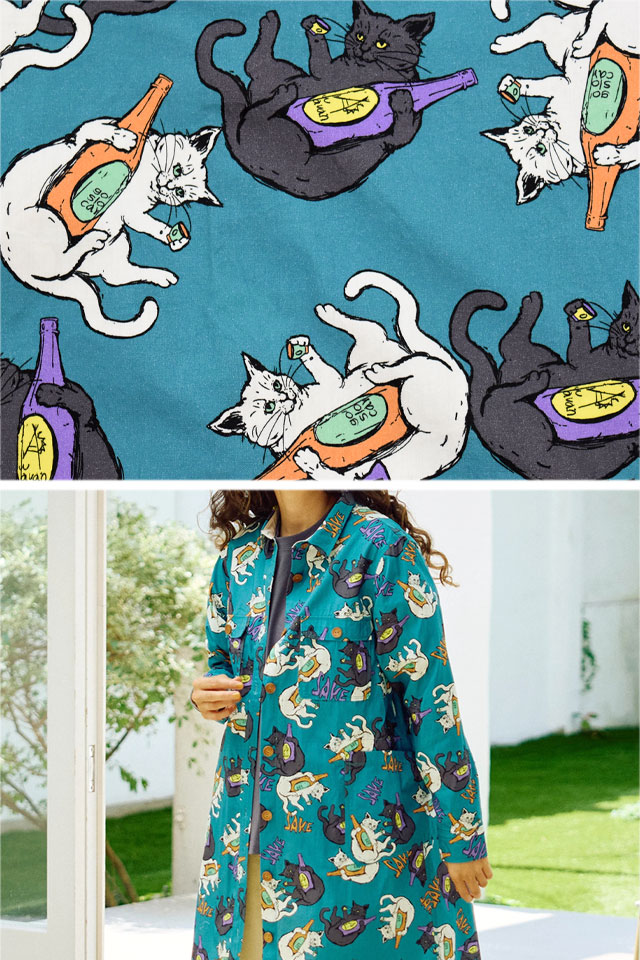 今季の総柄ワンピースはオリジナルの猫と晩酌柄で登場しました!