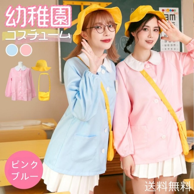 ハロウィン コスプレ 幼稚園 幼稚園児 衣装 仮装 定番 大人 セット フルセット レトロ ワッペン カバン 鞄 帽子 付き スモッグ ペア おそろい 幼稚園コス FKR送料無料