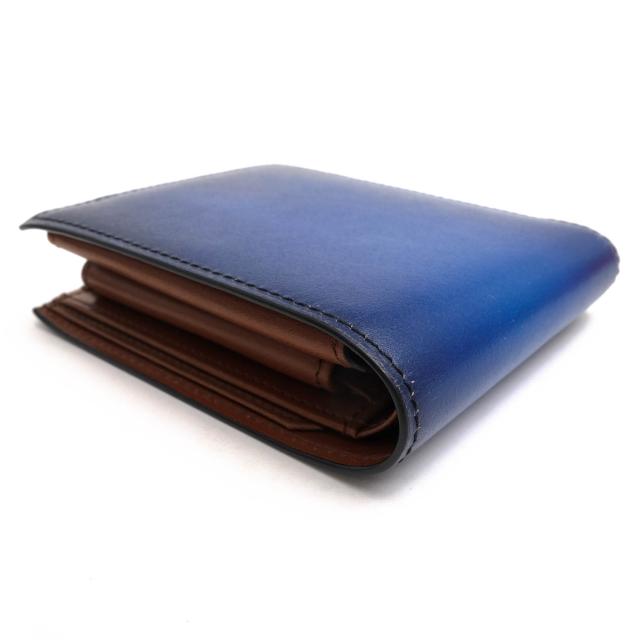 絵画のようなグラデーションに染め上げるフォスキーア技法で仕上げた二つ折り財布。イタリア産成牛の肩部分にあたる丈夫でありながらしなやかな革を使用。ライニングにはなめらかなスムースカーフを使用しており、軽量に仕上げられているのが特徴です。
