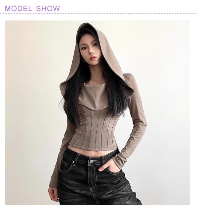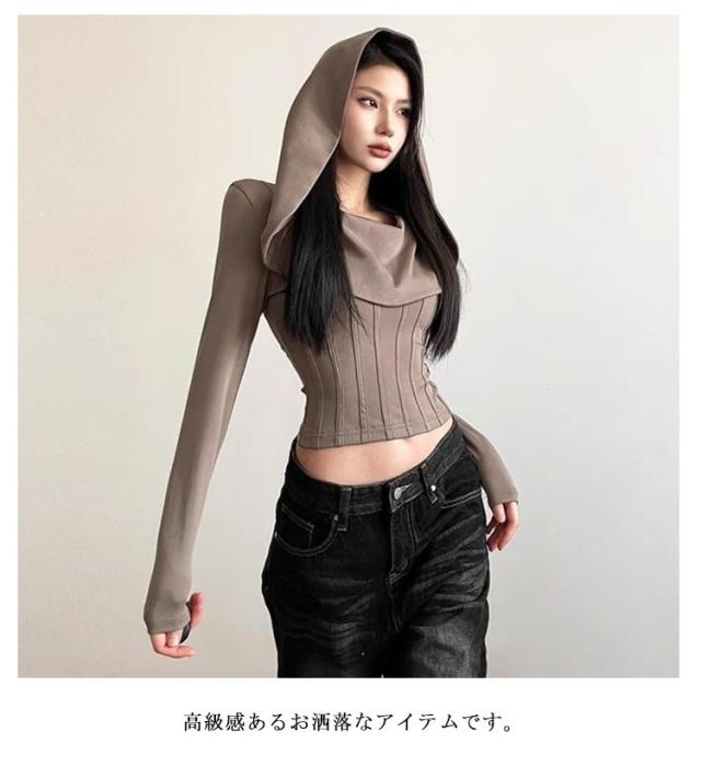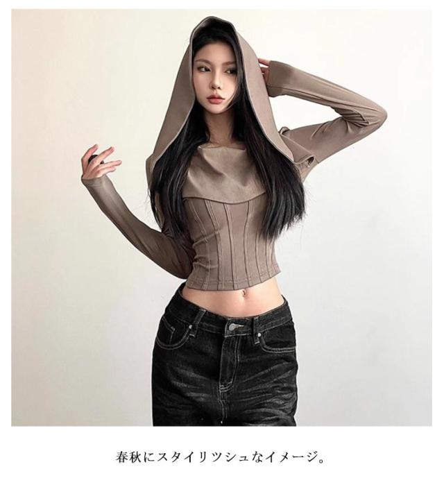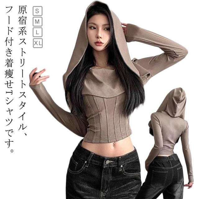 長袖 ティーシャツ 可愛い 長袖Tシャツ Tシャツ 個性的 原宿風 カットソー ポストアポカリプス かわいい hiphop ポストアポカリプス フード付き 女子 Y2K 高校生 ダンスウェア レディース 着?せ ストリート系 韓国ファッション S M L