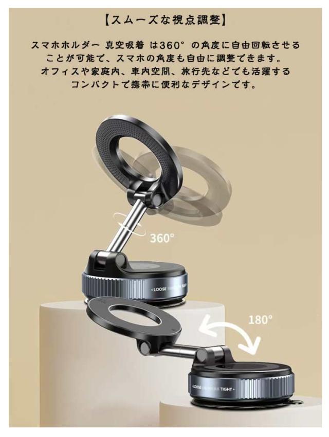 マグネット 車載スマホホルダー スマホスタンド 手動強力吸盤 真空吸着式スマホホルダー スマホスタンド 折りたたみ式 スマホホルダー 車 吸着式スマホホルダー 多角度自由調節 片手操作 おしゃれ iPhone用 Android用