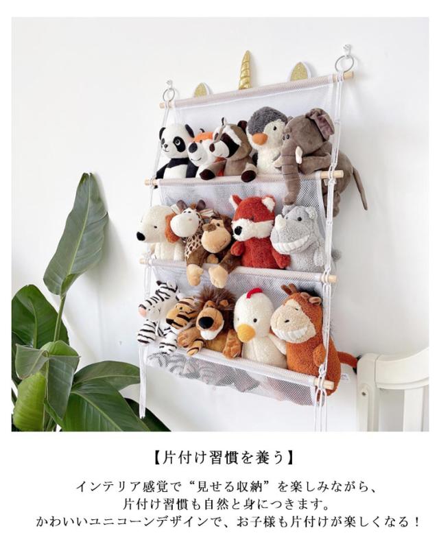ぬいぐるみ ハンモック ウォールポケット おもちゃ メッシュ 収納 ぬいぐるみ いぐるみ収納 ユニコーン 人形収納 可愛い 見せる収納 収納ネット おしゃれ 玩具収納 壁 棚 人形収納 陳列棚 陳列ケース