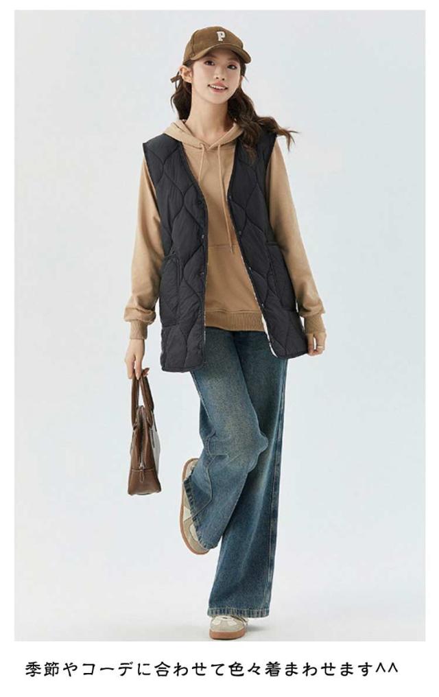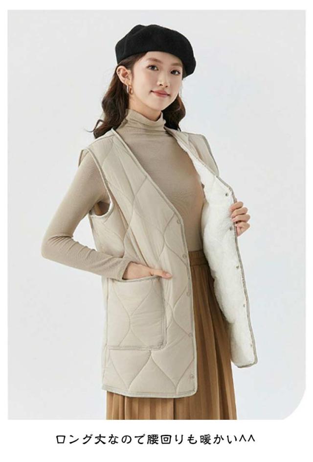 中綿ベスト レディース 暖かい フロントボタン ダウン風インナーベスト ロングジレ ミドル丈 ダウン風ベスト 韓国 アウトドア 裏起毛 軽量 アウター ノースリーブ キルティングベスト 防寒着 Vネック 細身 体型カバー 着痩せ ゆったり お洒落 キルティングベスト 秋冬