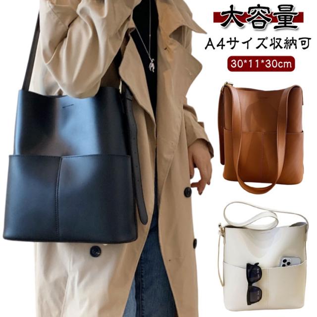 大容量 バケツショルダーバッグ バッグ バケツバッグ レディース バケツショルダーバッグ 肩掛け 外ポケット付き フェイクレザー 斜めがけバッグ A4サイズ収納可 かばん 通勤 通学 大人カジュアル トートバッグ