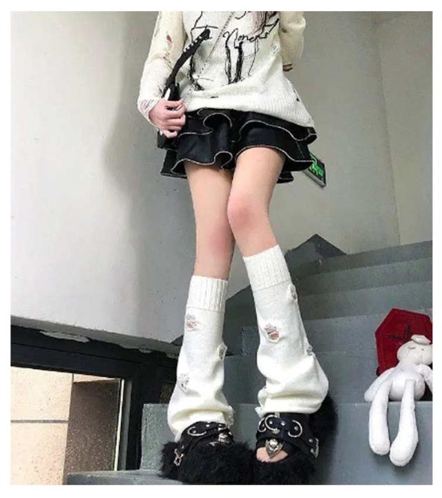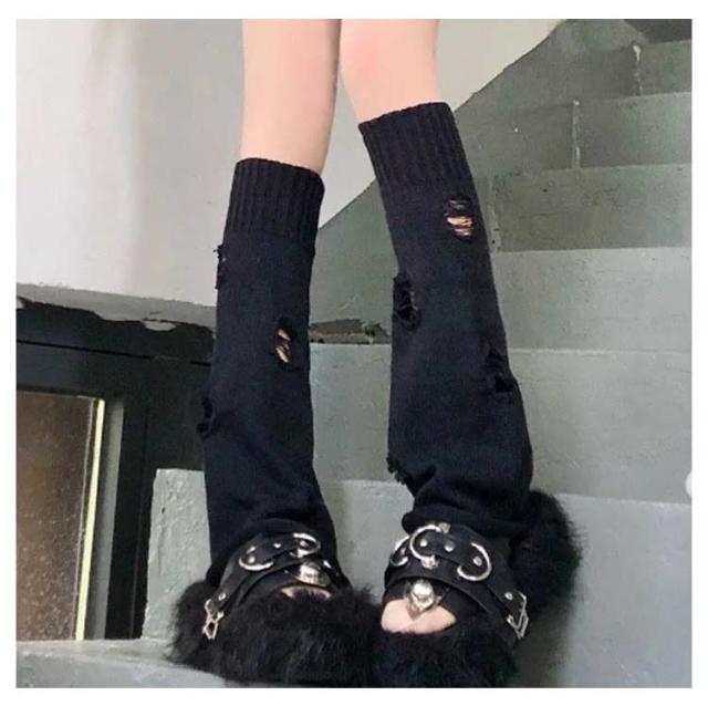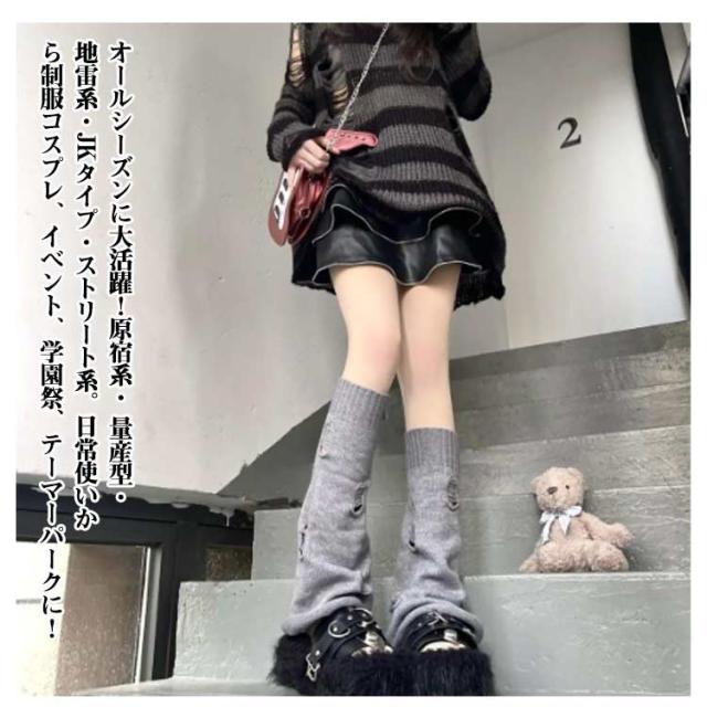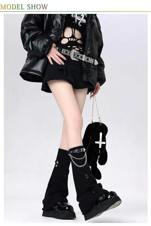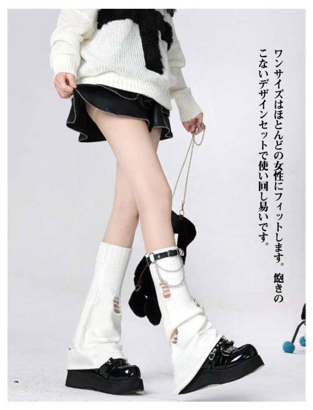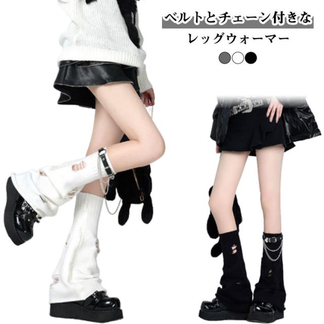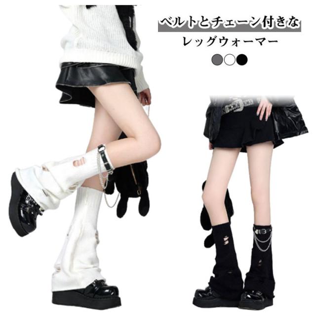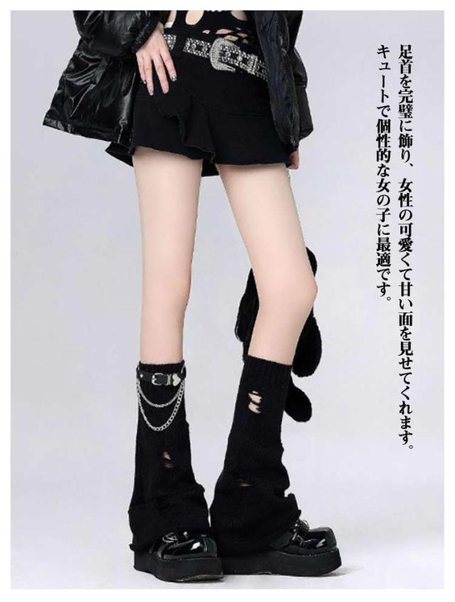 破れ穴 サブカル系 ルーズソックス レッグウォーマー ゴシック 冷え対策 チェーン レディース サブカル系 病み可愛い JK ベルト付き Y2K レッグカバー 女子 学生 ギャル 原宿パンク ゴスロリ サブカル系 地雷系 地雷系 暖かい