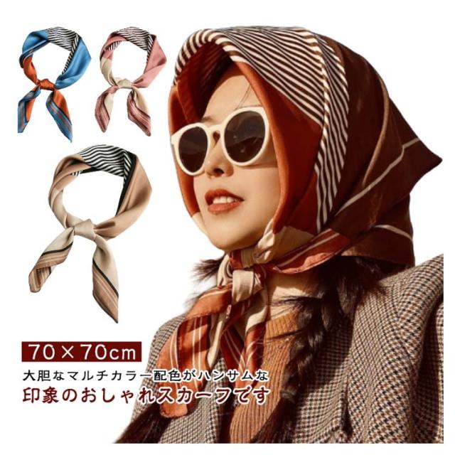 可愛い ストール 首巻き バッグスカーフ バッグ シルク風 リボン レディース スカーフ 花柄 夏 秋 冬 70×70cm 配色バンダナ リボンスカーフ 正方形 ネックスカーフ プリント ヘアアレンジ 日焼け対策 首 uvカット 春 おしゃれ 上品 高級感 母の日 誕生日 ギフト