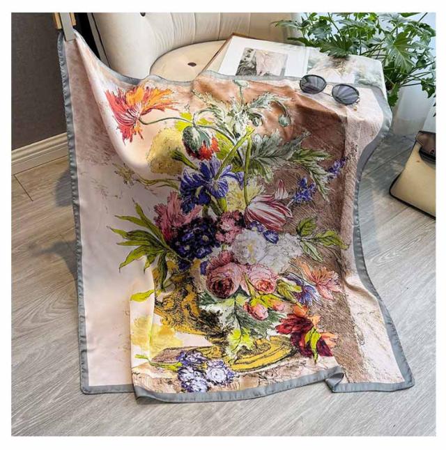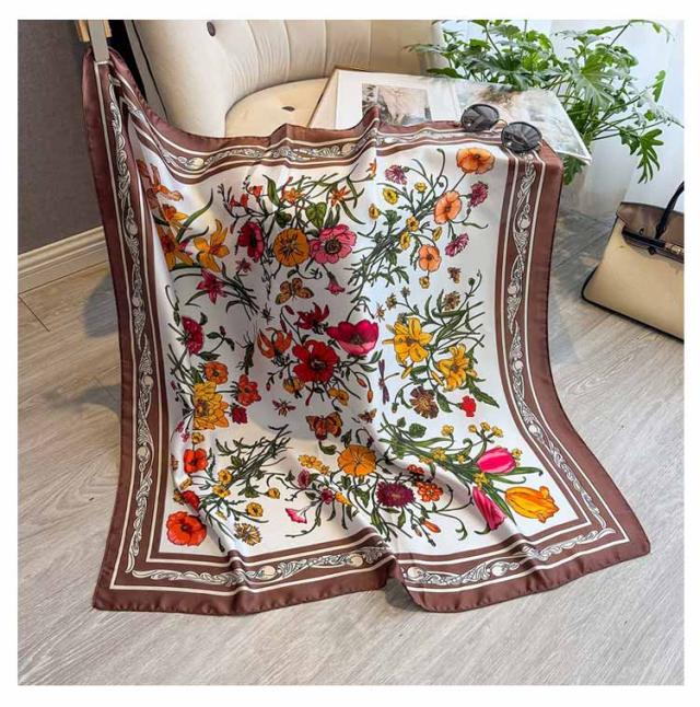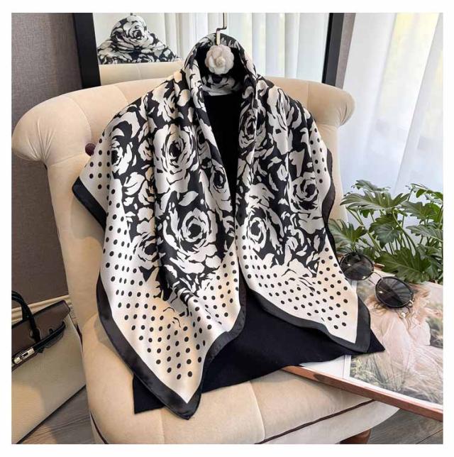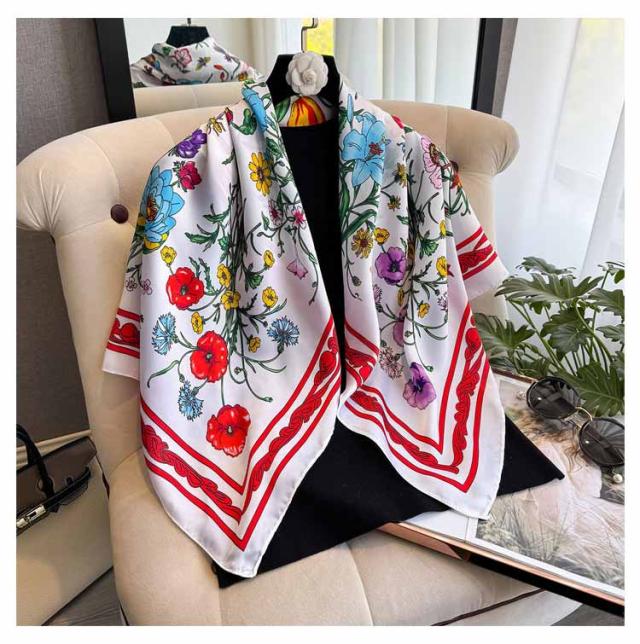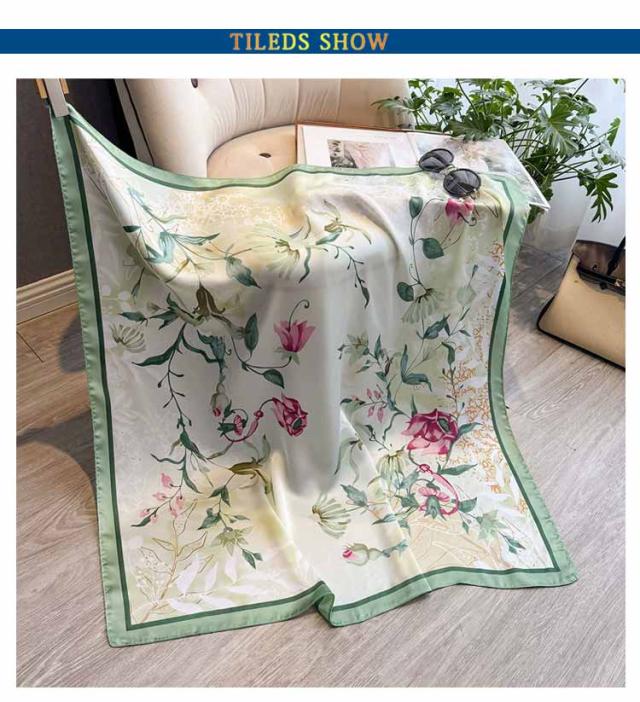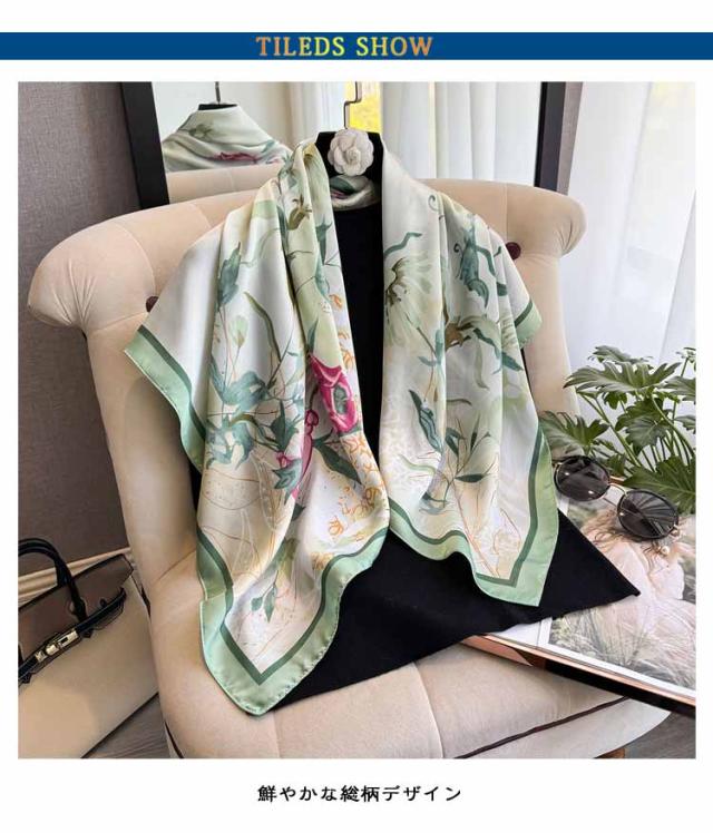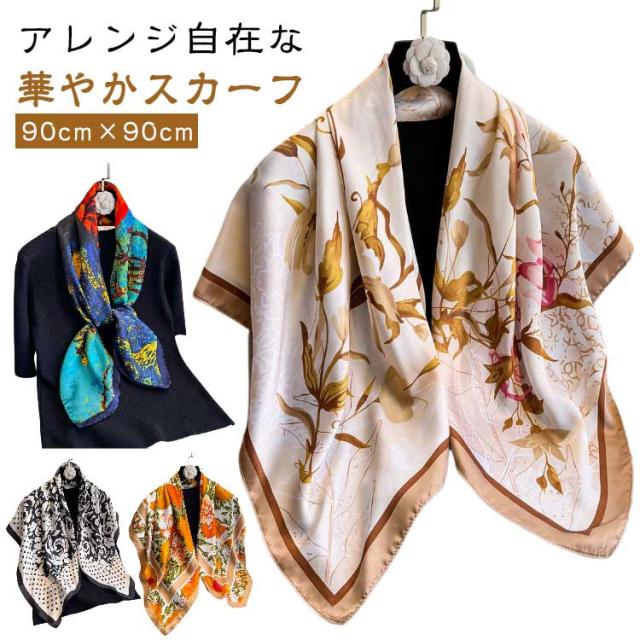 大判スカーフ 大判 シルク風 リボン 花柄 正方形 首巻き 配色バンダナ リボンスカーフ レディース ストール プリント バッグ 春 冬 夏 バッグスカーフ 秋 90×90cm ネックスカーフ 大判スカーフ ヘアアレンジ 日焼け対策 首