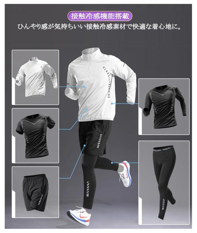 5点セット!メンズ ジャージ ストレッチ 上下セット コンプレッションウェア 接触冷感 ジムウェア 長袖 5点セット メンズ 半袖 吸水速乾 トレーニングウェア 秋 トレーニングウェア ウォーキング 運動着 おしゃれ 春 夏 5点セット 冬