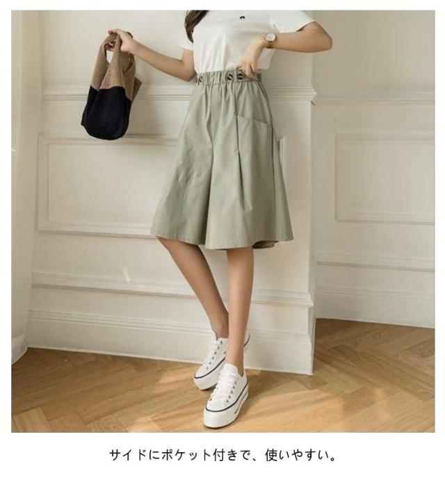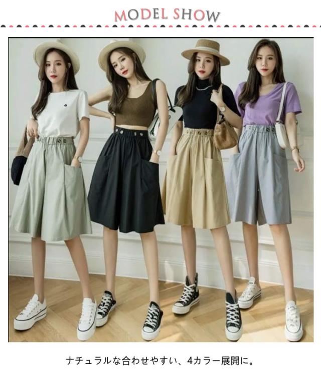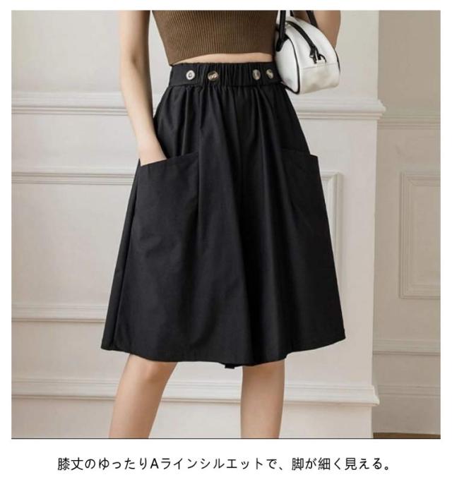 ガウチョパンツ Aライン ウエストゴム 薄手 膝丈 キュロットパンツ ゆったり ショートパンツ スカーチョ ハーフパンツ キュロットスカート お洒落 春夏 レディース ポケット付き カジュアル