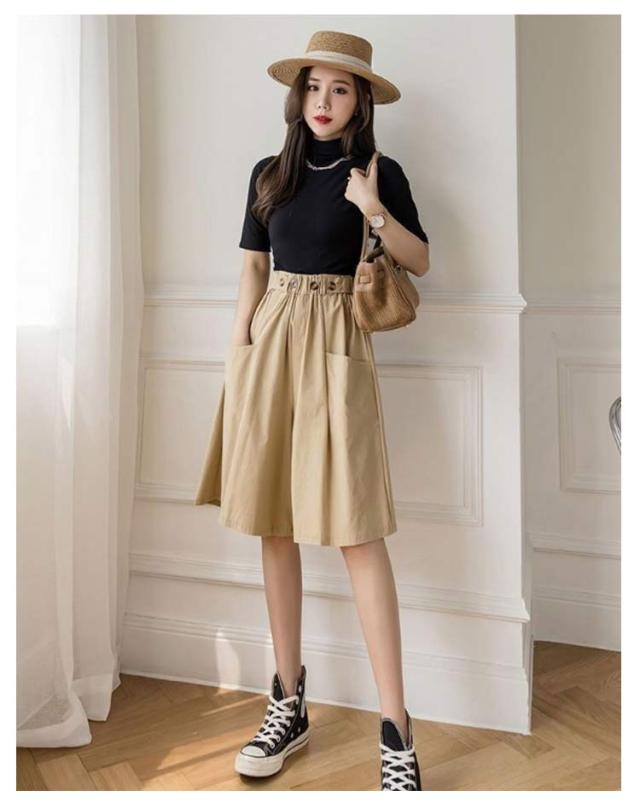 | 全4色!大人の女性が履け、キレイめカジュアルショートパンツ! 膝丈のゆったりAラインシルエットで、脚が細く見える。 ハイウエストでスタイルアップ効果も。 ハリがあり、サラッとした伸縮性のある素材が涼し気。 サイドにポケット付きで、使いやすい。 ナチュラルな合わせやすい、4カラー展開に。 | |