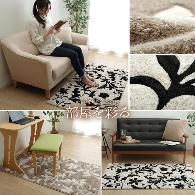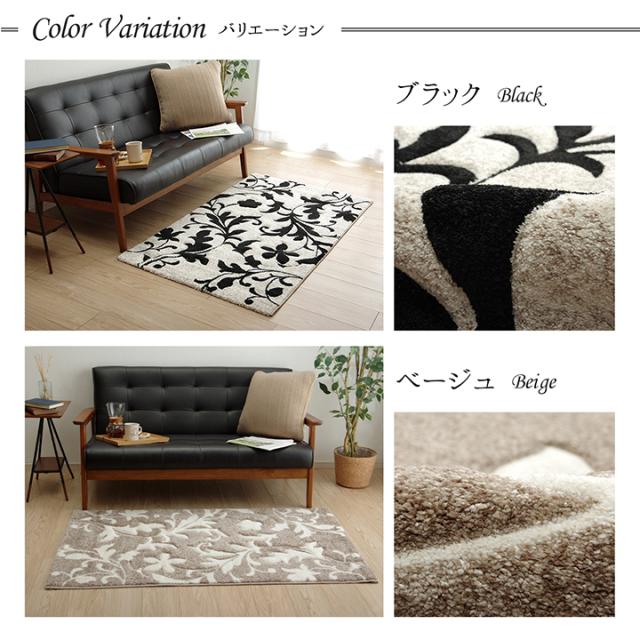 ネム カーペット 絨毯 ウィルトン ウィルトン織 ラグ カービング エレガント 抗菌防臭 耐久性 丈夫 遊び毛 80×140cm ブラック ベージュ