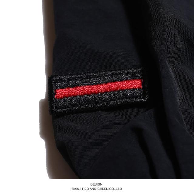 左袖には、創業時から変わらない『赤いラインをモチーフとしたブランドロゴ』刺繍を配置。