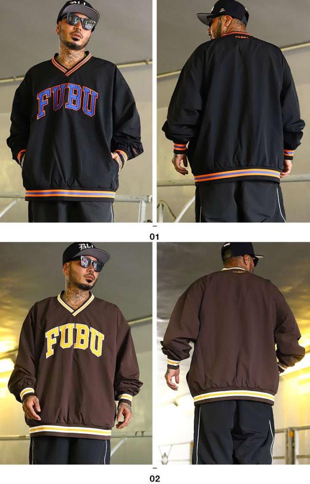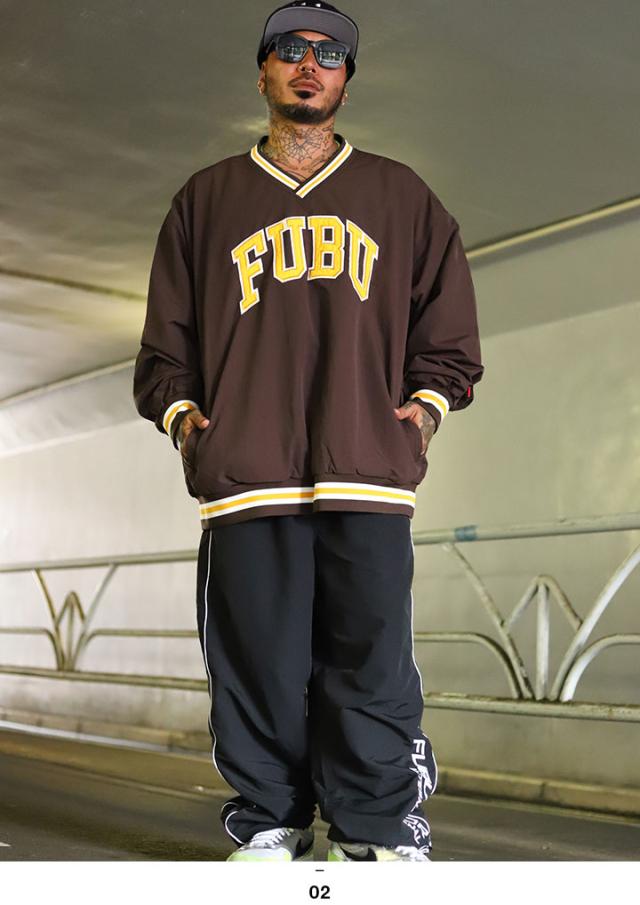FUBU アウター 長袖 ウインドブレーカー Vネック ピステ ブルゾン メンズ 春秋冬用 黒 茶色 大きいサイズ フブ ナイロンジャケット 切り替え ワッペン 刺繍 ビッグシルエット b系 ヒップホップ ファッション スポーツ ストリート系 ハイ ブランド 服 2025秋冬 新作 FAM-52104
