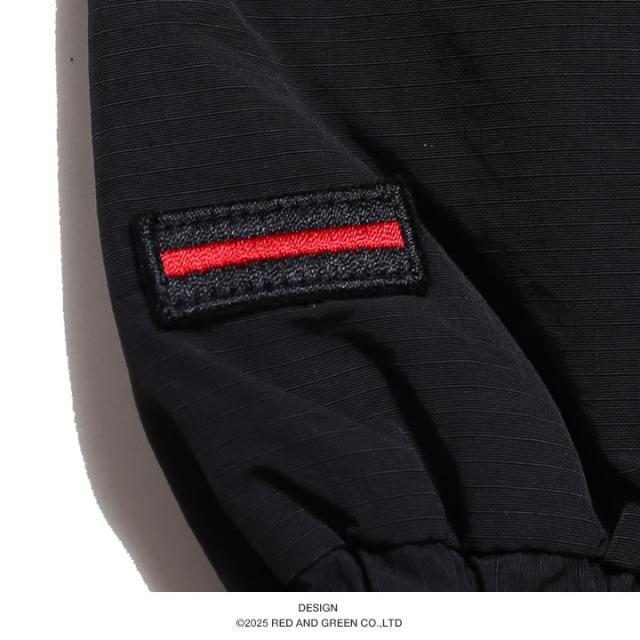 左袖には、創業時から変わらない『赤いラインをモチーフとしたブランドロゴ』刺繍を配置。