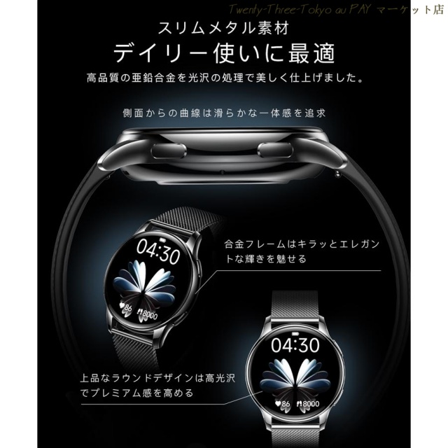 2026年新発 スマートウォッチ 女性用 通話機能 レディース 日本製センサー 血圧 血中酸素 丸型 高級感 ステンレスベルト IP68防水 歩数計 運動記録 腕時計 着信通知 睡眠モニター