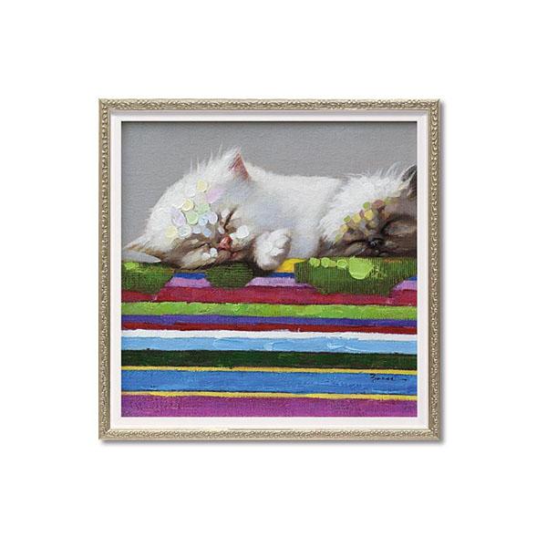 送料無料 ユーパワー オイル ペイント アート 「キャッツ スリーピング」 Sサイズ OP-07015 1枚ずつ丁寧に手描きした、オイルペイントモダンアート☆