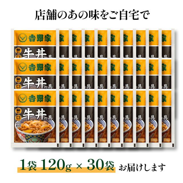 吉野家牛丼の具120g×30袋 | 牛丼 冷凍 牛丼の具 吉野家 30袋 レトルト 簡単調理 時短 夕食 お弁当 一人暮らし グルメ ギフト 贈り物 惣菜 冷食 牛肉 大容量