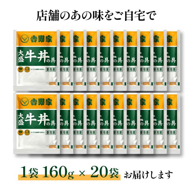 吉野家大盛牛丼の具160g×20袋 | 牛丼 冷凍 大盛 牛丼の具 吉野家 20袋 レトルト 簡単調理 時短 夕食 お弁当 一人暮らし グルメ ギフト 贈り物 惣菜 冷食 牛肉 ボリューム まとめ買い
