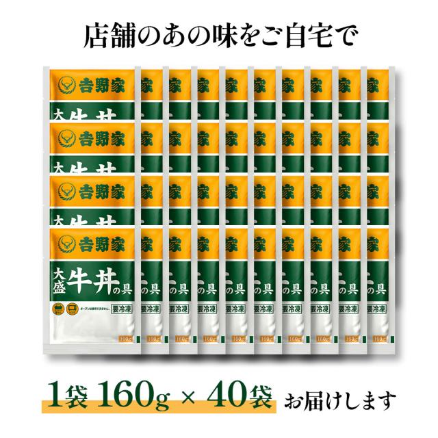 吉野家大盛牛丼の具160g×40袋 | 牛丼 冷凍 大盛 牛丼の具 吉野家 40袋 レトルト 簡単調理 時短 夕食 お弁当 一人暮らし グルメ ギフト 贈り物 惣菜 冷食 牛肉 ボリューム 大容量 まとめ買い